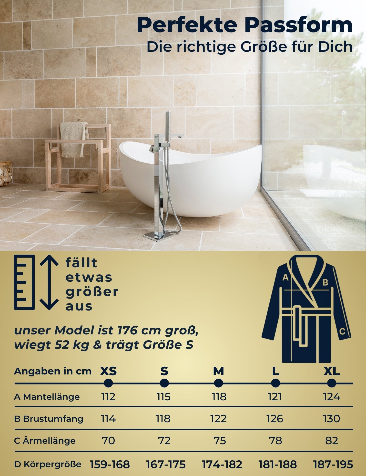 Unsere kuschelig-warmen Damen Bademäntel werden aus sorgfältig ausgewählten Materialien von einem Textilunternehmen mit erfahrenen Näherinnen in langlebiger Hotelqualität in der Türkei hergestellt und sind OEKO-TEX STANDARD 100 zertifiziert.